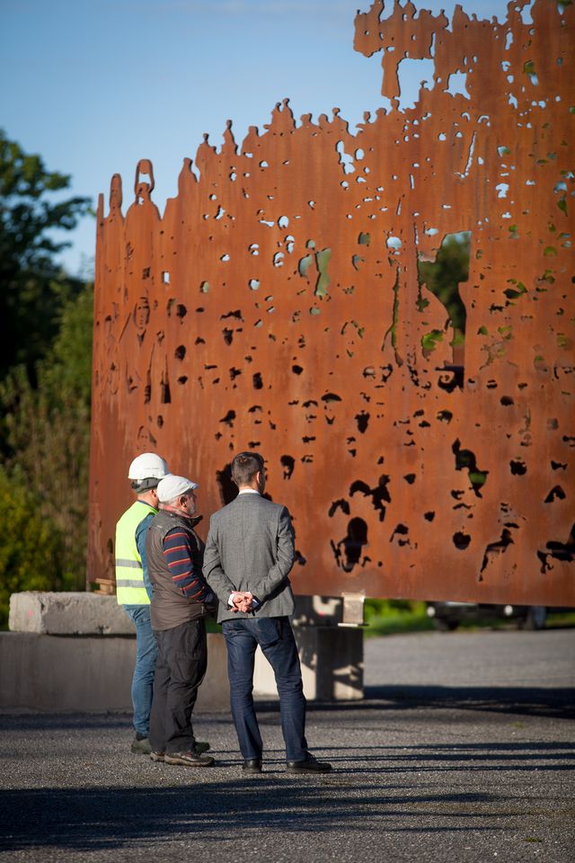 Neljapäeval, 28. augustil tõstis Ithal-kraanad OÜ kraana Pühalepa kiriku ees asuva Vabadussõja mälestusmärgi ajutisest asukohast betoonist aluse peale.