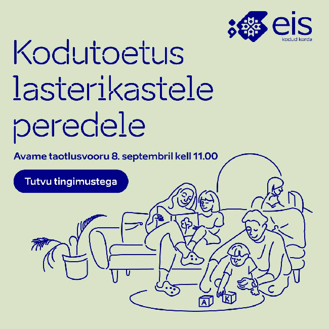 Täna, 8. septembril 2025 kell 11.00 avas Ettevõtluse ja Innovatsiooni Sihtasutus lasterikaste perede kodutoetuse taotlusvooru. Voor on avatud kuni 20. oktoobrini kell 23.59.