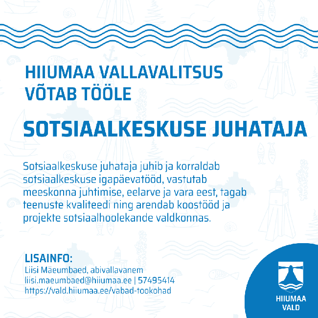 Hiiumaa Vallavalitsuse hallatav Hiiumaa Sotsiaalkeskus otsib juhatajat! Tähtaeg: 3. oktoober 2025