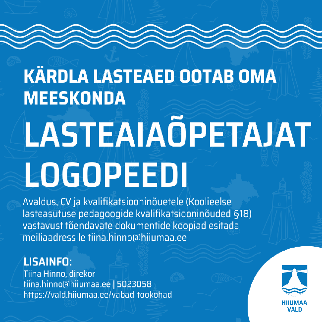 Tööpakkumine: Kärdla Lasteaia lasteaiaõpetaja ja logopeed