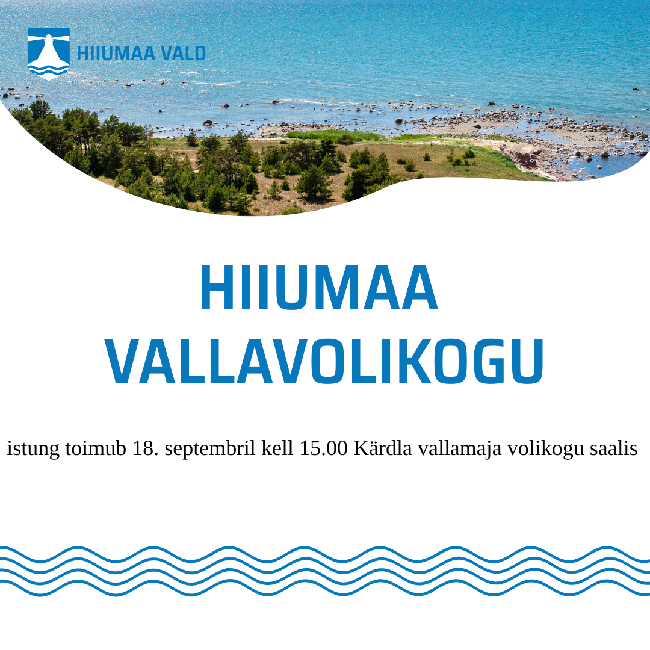 Hiiumaa vallavolikogu istung toimub 18. septembril 2025 kell 15.00 Kärdlas volikogu saalis. Päevakorras on 15 punkti.